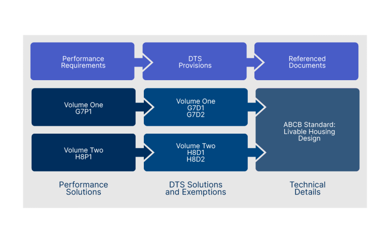 The DTS Provisions refer to a new ABCB technical standard, called the ABCB Livable Housing Design Standard. It provides the ‘nuts and bolts’ technical details along with explanatory information to help you understand why they are there and how to follow them correctly.