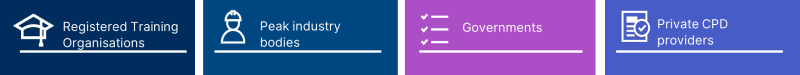 To access the micromodules, you must be a CPD provider. A CPD provider is an entity, typically an organisation or government that develops and/or provides CPD activities or CPD content. A CPD provider may or may not be a Registered Training Organisation (RTO).